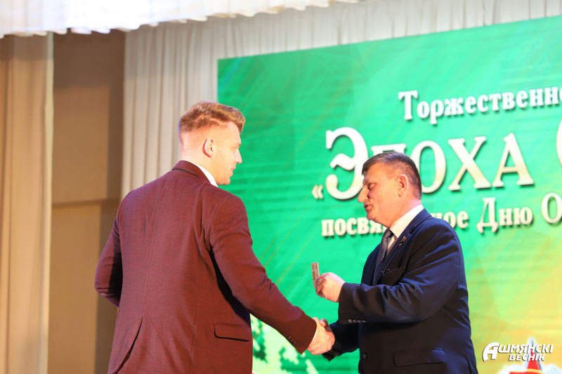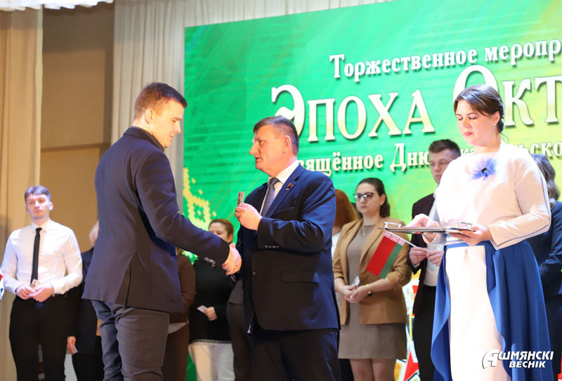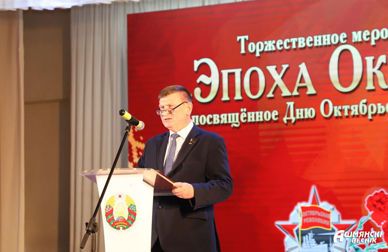 — Глубокое осмысление собственного многовекового исторического опыта, уроков двадцатого века, Октябрьской революции и достижений мировой цивилизации будет и дальше способствовать обретению белорусским народом уверенности в своих силах и возможностях, помогать формированию идеологии национальной государственности. Современная Республика Беларусь уверенно идет собственным путем развития. Созидательный труд, уважение к истории, славным традициям и свершениям многих поколений – главные факторы консолидации белорусского общества, — подчеркнул, обращаясь к присутствующим, председатель Ошмянского районного Совета депутатов Юрий Карпович.
