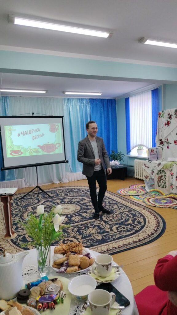 В рамках проекта «Средство от грусти» участников любительского объединения «Для тех, кому за…» в очередной раз собрало ретро-кафе «Чашечка весны»! Уютные стены отделения дневного пребывания для людей пожилого возраста стали местом объединения очаровательных женщин, полных весеннего задора, оптимизма, жизнелюбия! Присутствующие с удовольствием аплодировали любимым артистам, слушали авторские стихотворения местных поэтов, а также весело проводили время! В завершении встречи всех ожидали приятные сюрпризы!